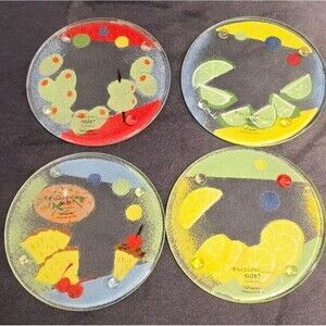 Fused art glass cocktails coasters set of 4 Colorful Fruits by William McGrath, Fusion Art Glass Studio, InKogneto, 56287.