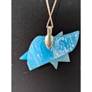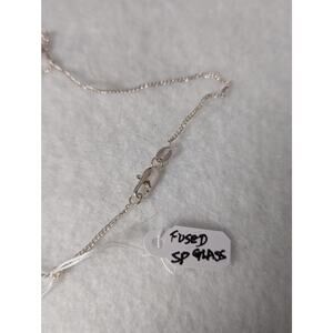 Fused glass pendant blue freeform and layered 20" SP chain + bail Lobster clasp