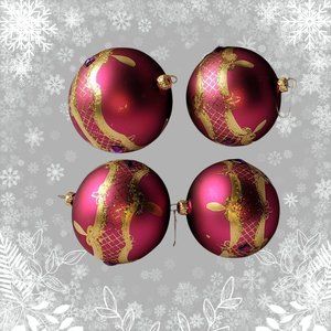 Fushia & Gold Mouth Blown Glass Christmas Ornaments 4 Med Large, 2 Large Set ✨HP