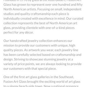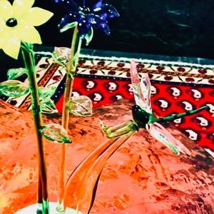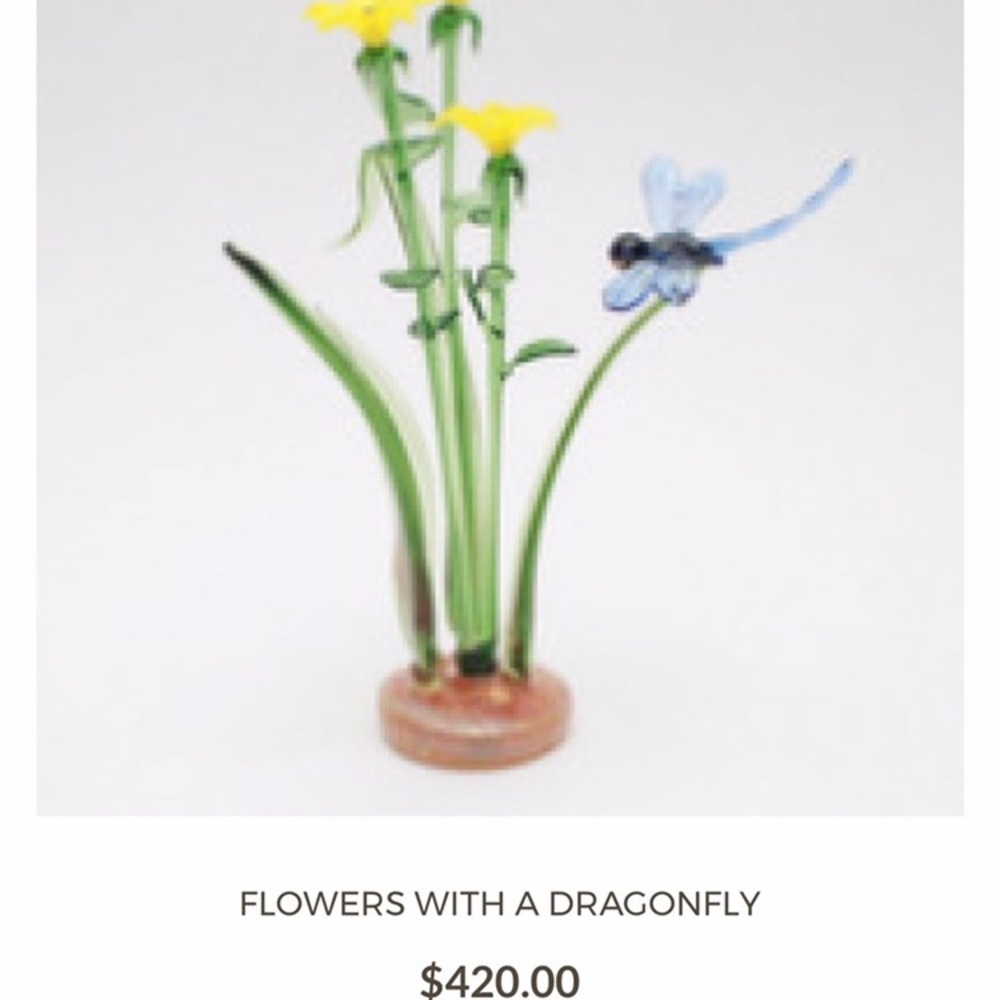 This is a listing for one of a kind handmade glass made by an artist on demand only . So no pieces are alike , sold only in fusion gallery ( please read article in pics ) . I chose the 3 flowers with the dragon fly . Absolutely stunning piece of art ♥️