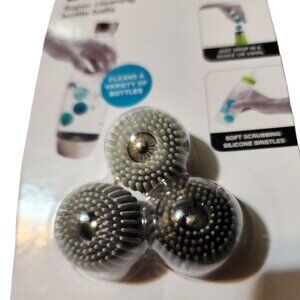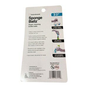If you can't fit a sponge inside of your favorite reusable water bottle, these Sponge Ballz Bottle Cleaning Balls are coming to your rescue! The balls are made of silicone, and are super simple to use. Simply place the balls into the water bottle with a bit of soap and warm water, and shake them around. The edges of the silicone balls will scrub clean the hard-to-reach sides of your water bottle. The balls are reusable, dishwasher safe, and come packaged in a hanging blister pack.,FusionBrands 3 Piece Sponge Ballz Bottle Cleaning Balls on Clip Strip,