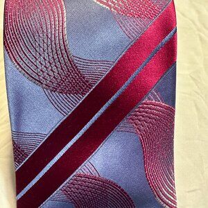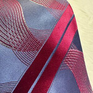 Add a punch of personality to your wardrobe with this striking necktie featuring undulating pink and red wave patterns set against a rich blue backdrop. Two deep red diagonal stripes slice through the design, adding structure and contrast to the fluid motif. The result? A visually dynamic accessory that balances movement with bold geometry.