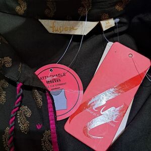 Fusion Printed Cultural Boho Tiered Paisley Midi Dress Olive/Pink Medium NWT