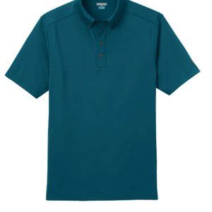 Fuson Men's XXL Teal Polo Black White Stripe Collar