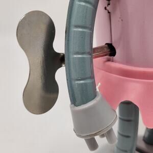 Features: Wind-up tin/plastic robot figure with wind key and accessories (can, lipstick, small peg);