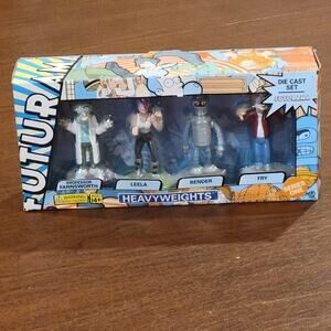 Futurama Series 1 Heavyweights Die Cast 4 x Figure Box Set, Leela Fry Bender etc New, sealed box. Age 14+. UPC 642063006263. Weight 13oz plus shipping materials.