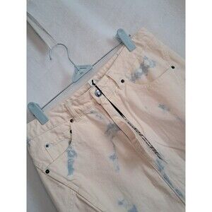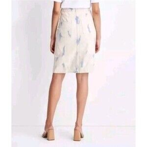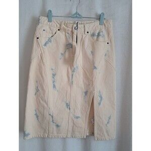 Future Collective Beige Blue Knee Length Denim Skirt Asymmetric Slit Size 6 NWT