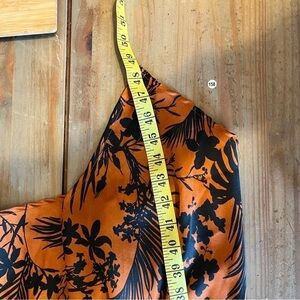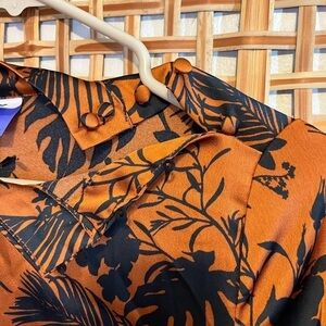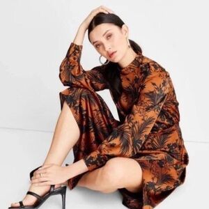 Future Collective Brown Black Floral Button Mock Neck Asymmetrical Midi Dress S