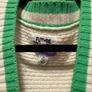 Future Collective Cream Green Trim Cardigan 1X Preppy Knit Button Sweater