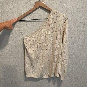 NWT cream/beige pointelle open knit one sleeve knit long sleeve sweater top from Future Collective by Jenny K Lopez. Size medium
