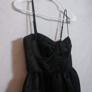 Future Collective Holiday Sweetheart Bubble Satin Midi Dress Black Classic Sz S