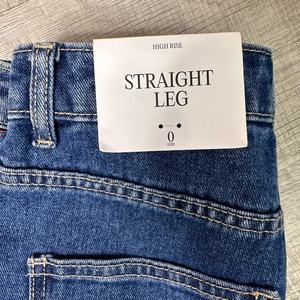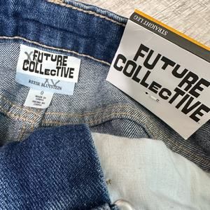 Future Collective Jeans Medium Wash Women's 0 Blue High Rise Denim Straight Leg
