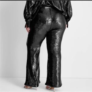 Future Collective by Kahlana Barfield Brown Women’s Black Sequin Flare Pants, 28W/30W, NWT