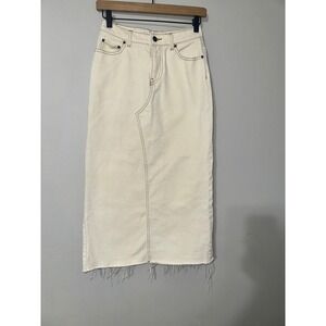 Future Collective Reese Blutstein Cream Denim Midi Skirt Raw Hem Women's Size 00