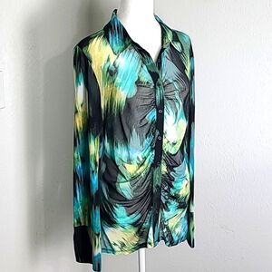Future Collective Sheer Buttondown Blouse, Ruching Down the Center, Size Medium