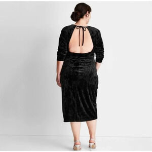 Future Collective Size 4X Black Velvet Long Sleeve Open Back Front Slit Dress