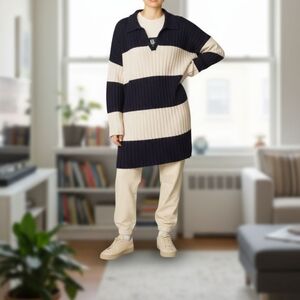 Elegant and stylish, this striped midi dress features a classic black and cream color combination. Perfect for any occasion, it offers a comfortable fit with a chic design. Size XL color navy blue/ Ivory and maroon/Ivory. Measurement shoulder to shoulder 26" armpit to armpit 25" length from shoulder to hem 35"
