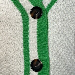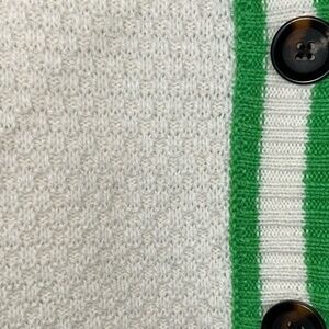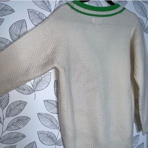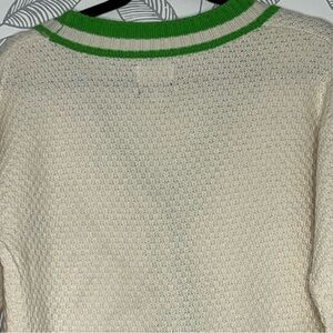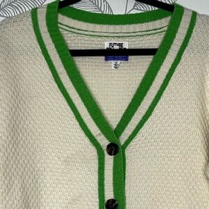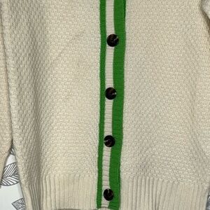 Target collaboration Future Collective x Kahlana Barfield Brown Varsity cardigan sweater. Size x-small. Ivory with green trim. Collegiate style. Button front. Great neutral with a pop of color. Cozy & warm. Slightly oversized. Stretch material. Needs to be ironed / pressed. Preloved. Please see all photos for condition.
