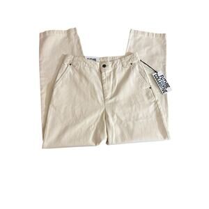 Both pants has are NWT but white pants has very small mark on front (pictured) from being at the bottom of a mixed merchandise pallet.