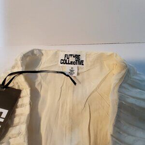 This Future Collective cream pleated midi skirt offers a harmonious blend of elegance and versatility, seamlessly fitting into both casual and semi-formal settings. The flowing fabric gently skims the contours, adding an air of sophistication and grace to any ensemble. Its neutral hue complements a wide array of color palettes, ensuring it remains a staple piece in any wardrobe.