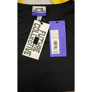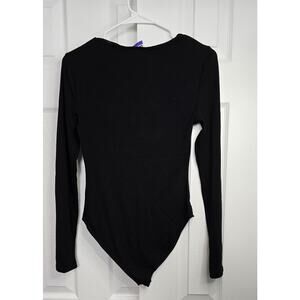 Future Collective Women's Ribbed Cut Out Neck Black Bodysuit- Size Small