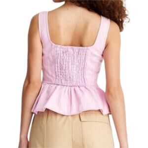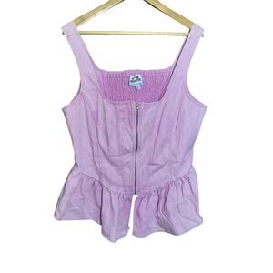 Future Collective Womens Sleeveless Pink Denim Corsett With Flounce Hem, Full Front Zip and Elastic Ruching Back, Size XXL, Please See Measurements For Best Fit, Nice Condition!