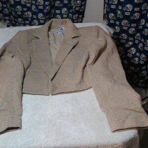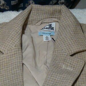 Future Collective Women's Tan Cropped Blazer Jacket Plaid Reese Blutstein XS