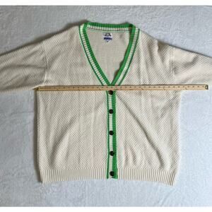 Future Collective Women’s Wool Blend Cardigan Size 4X Cream Green Varsity Preppy