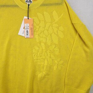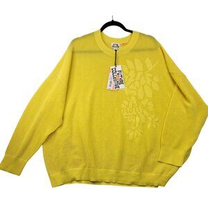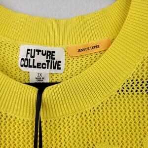 Future Collective Yellow Mesh Knit Pullover Sweater 2X Floral Design