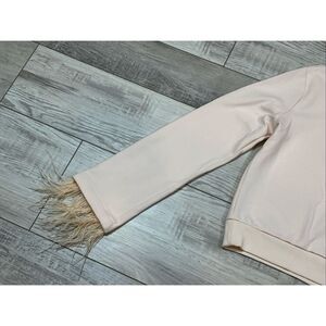 Future collective elegant fun top with feather around the wrist of the sleeves size S.