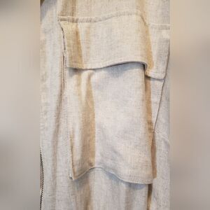 This Linen Utility Jacket from Future Collective with Jenny Lopez combines practicality with elegant style. Made from a linen-cotton blend in tan, this utility jacket is designed with a collared neck and a front full-length zipper in a below-hip length. The tie-front adjustable waistband helps you find the perfect fit, and four flap pockets give you plenty of space for stashing on-the-go essentials.