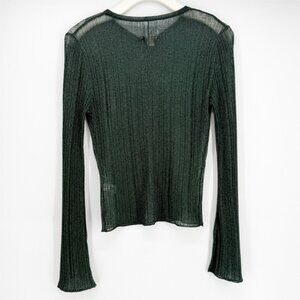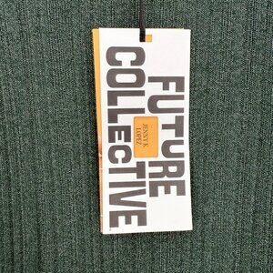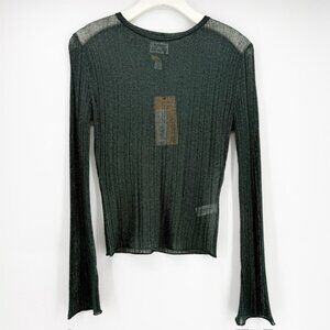 Future Collective with Jenny K. Lopez Dark Green Crewneck Sheer Sweater Top NEW