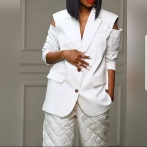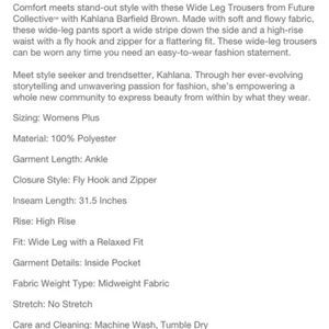 Future Collective High Rise Wide Leg Ivory Trousers W/Black Side Stripe NWT 4X