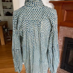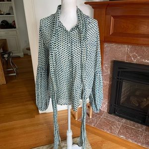 NWT soft cotton lightweight polka dot blouse. Ties around the neck. Armpit to armpit 22. Shoulder to hem 24