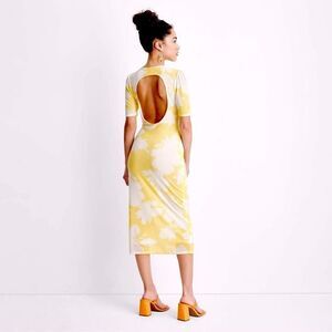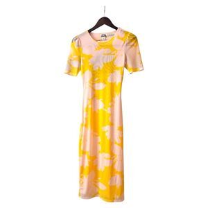 Future Collective Yellow Floral Print Mesh BodyCon Dress Open Back Sz XS