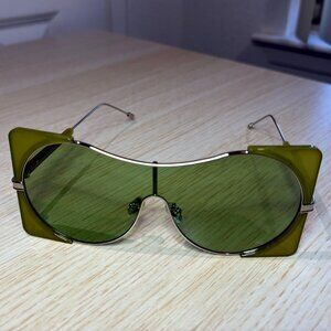Futuristic Green Visor Sunglasses – Bold Shield Frame Aesthetic