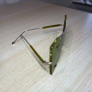 Your summer flex just landed. These green-tinted visor sunglasses scream street-style elite. Built with a sleek silver wireframe and sculpted triangle corners, they add instant drip to any outfit. Rock 'em with cargos, oversized denim, or a bikini and cover-up—your style, amplified.