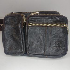 Fuzhiniao Brown Leather Hip Pack Crossbody Travel Streetwear Man Bag Unisex VGC