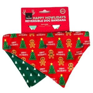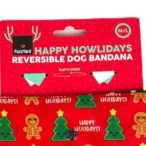 FuzzYard Christmas Trees & Gingerbread Men Reversible Bandana Red Green Size M/L