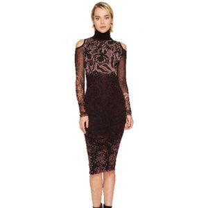 Beautiful purple, rose, maroon, plum color with abstract floral details. Very sexy feminine fatale, bodycon style. No holes or runs in the mesh fabric and no wear to speak of. Dress is pre-owned however. I wore it once and it wasn't really for me. Retailed for $485.