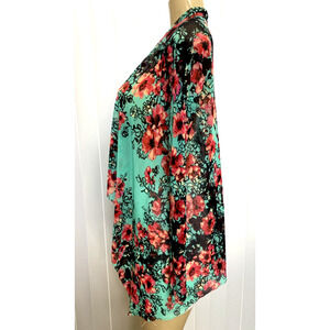 Fuzzi Open Cardigan Top Tulle Floral Blue Pink Mesh Long Sleeve Draped B…