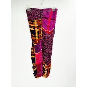Fuzzi Patchwork Print Ruched Midi Skirt Size XXS