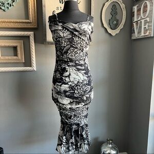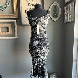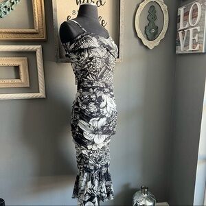 A beautiful floral-print frock is made from signature tulle mesh that's lightweight and wrinkle-resistant, making it ideal for travel. Meticulously ruched from waist to hip, the shoulder-baring body-con dress kicks out at the hem for a bit of playful movement.