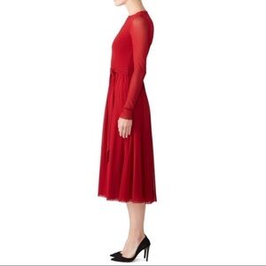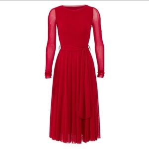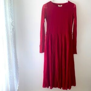 Fuzzi Red Sheer Long Sleeve Midi Dress