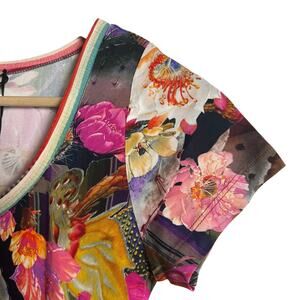 Fuzzi Striped Floral Multicolor Short Sleeve Scoop Neck Jersey Maxi Dress Size S