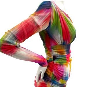 Gorgeous Fuzzi Women's Long Sleeve Dress made in Italy, new with tags, size Large. Form fitting bright colored Ruched Flattering Style. This dress is a stunning piece of Italian design. Perfect for any occasion, this dress offers both comfort and style. Don't miss out on owning this beautiful, brand-new dress! Add this to your wardrobe today! Artistic Wearable Art, Event, Special Occasion, Date Night, Club Night, Sexy, Ruching Stretch & Comfort!