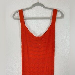 Fuzzi by Jean Paul Gaultier Orange Bodycon Sleeveless Mini Dress Women’s Size Medium. See through, stretchy material. Made in Italy. 100% Viscose Rayon.