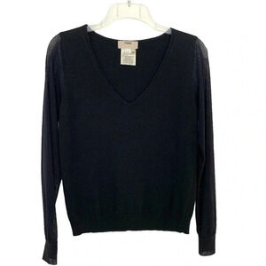 Fuzzi by Jean Paul Gaultier Sweater Sheer Sleeve V Neck Top Black Size XS NWT