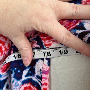 • Vibrant floral print with red, pink, and blue tones