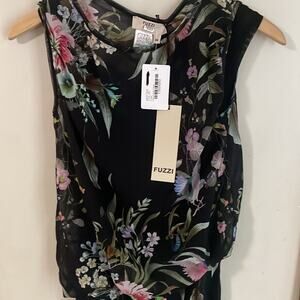 Fuzzi Bouquet Floral Print Sleeveless Tulle Jersey Sheath Dress